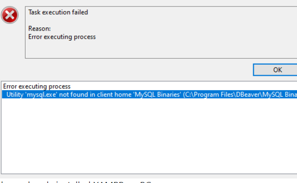 sql 백업 파일 받아가지고 다른 데이터 서버에 넣을려고 하는데 dbeaver 에서 아래와 같은 에러가 가 뿜어져나오면서