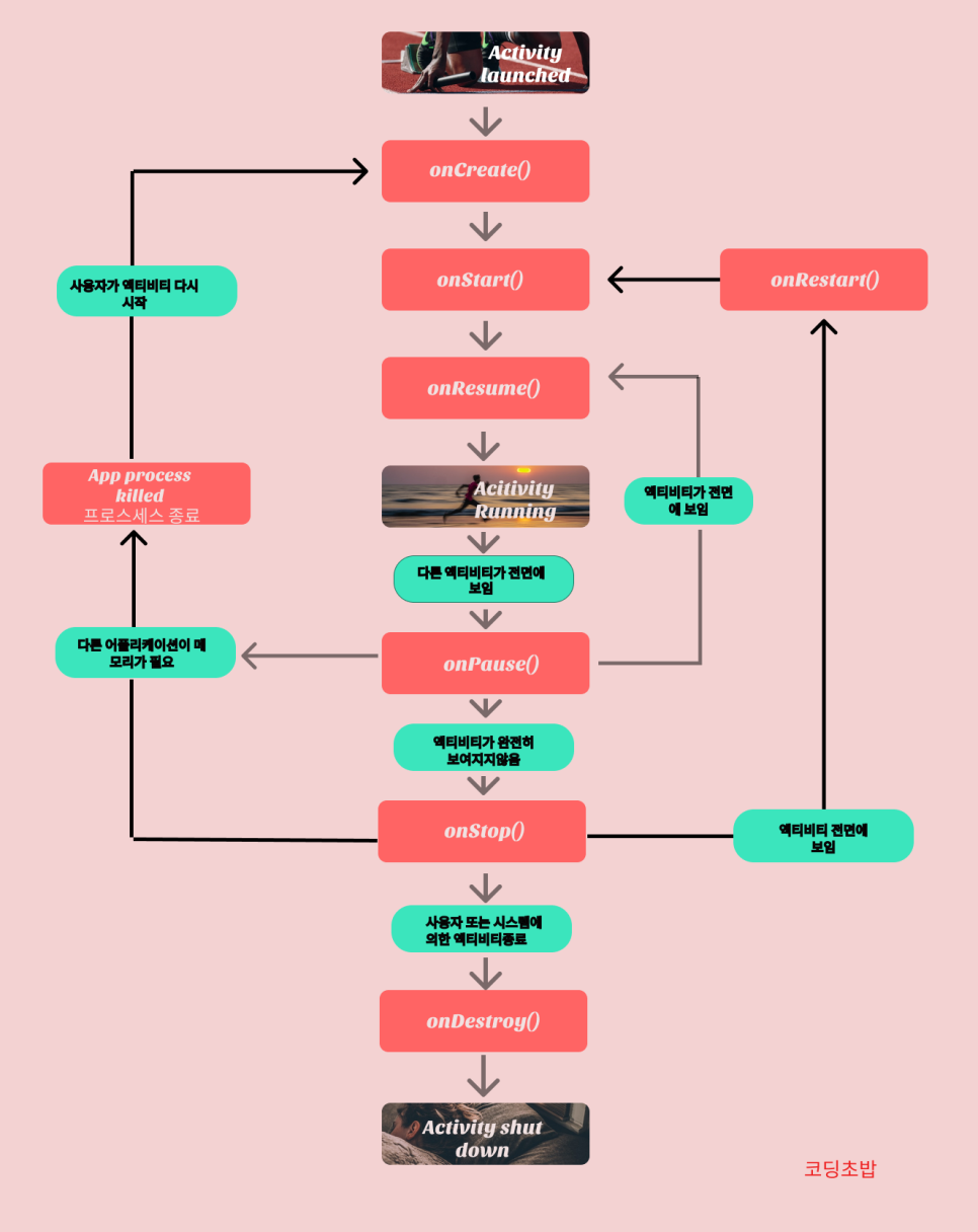 액티비티는 실행부터 종료까지 많은 상태 변화를 거치며