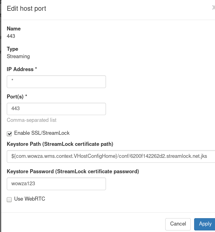 Get SSL/TLS certificates from the Wowza Streaming Engine StreamLock service Updated on 01/20/2022 1:53 pm PST Learn how to obtain a StreamLock™ certificate and use it for SSL/TLS network encryption in a variety of Wowza Streaming Engine™ workflows. The