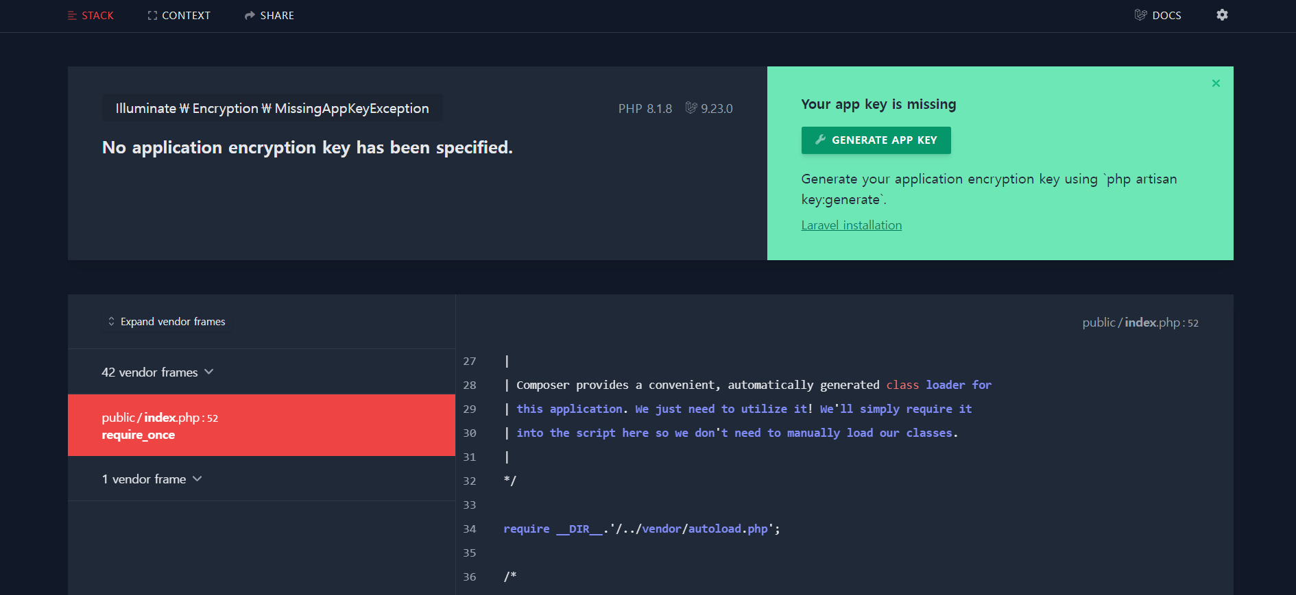 APP_DEBUG=true 의 경우에서는