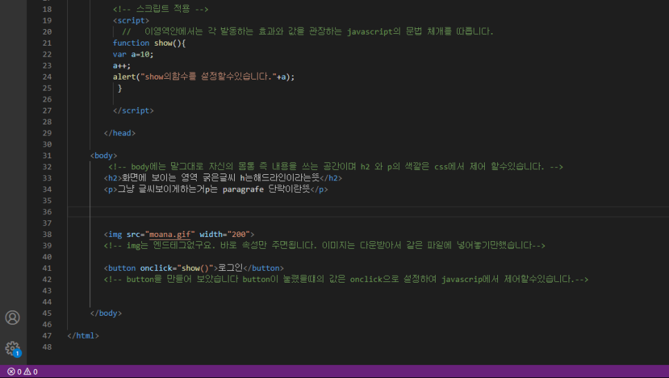 script는 javascript로 눌렀을때 발동되는 함수들을 제어할수있습니다