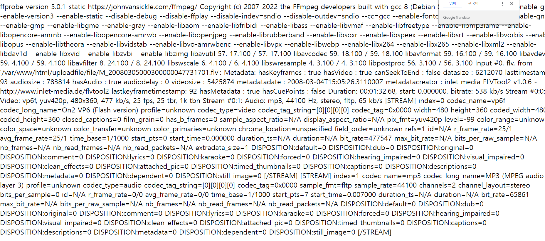 결국.. 이 ffprobe 결과값을 변수값에 넣던가 해야한다.. 흐엉..