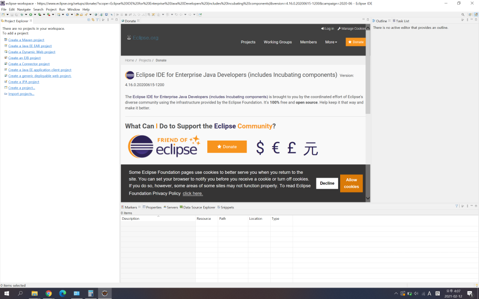 java를 설치안하셨다면 eclipse만 설치후 안켜질수있습니다