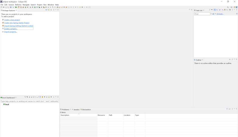 이렇게되면 eclipse에 스프링 플러그인이 정상적으로 작동하고 새로운 프로젝트를 만들수있습니다.