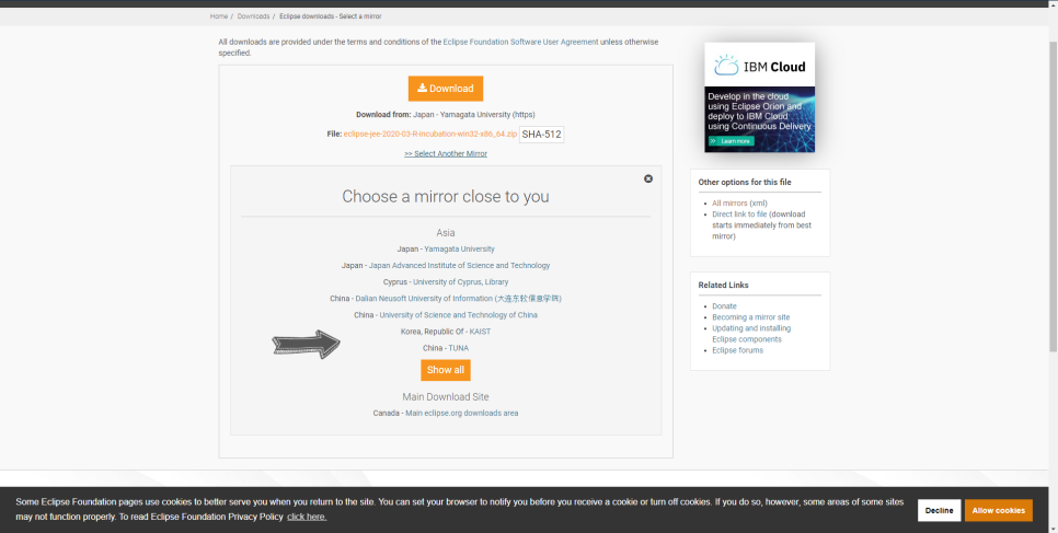 이후 나라까지 고르시면 다운로드가 시작이됩니다.